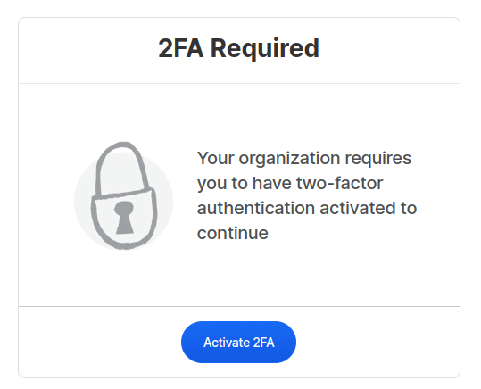 Organizations and communities can opt-in to enforce 2FA for all their admins. Any attempt at triggering admin operations or visiting the admin pages will be blocked until the admins enable 2FA on their profiles. Projects and events inherit the 2FA settings from their parents.