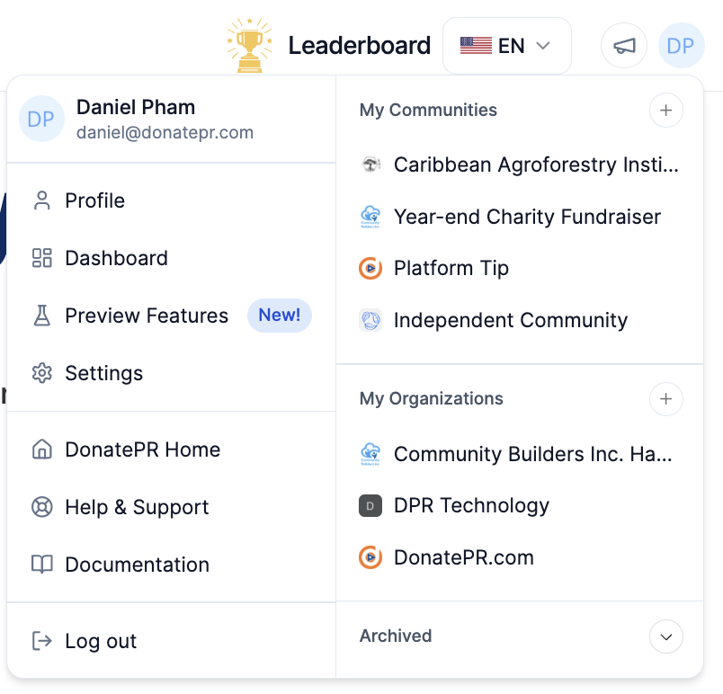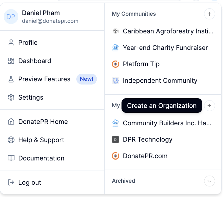 If you need detailed instructions on how to create a Community, please read our [Creating a Community](https://docs.donatepr.com/communities/create-collective) page.