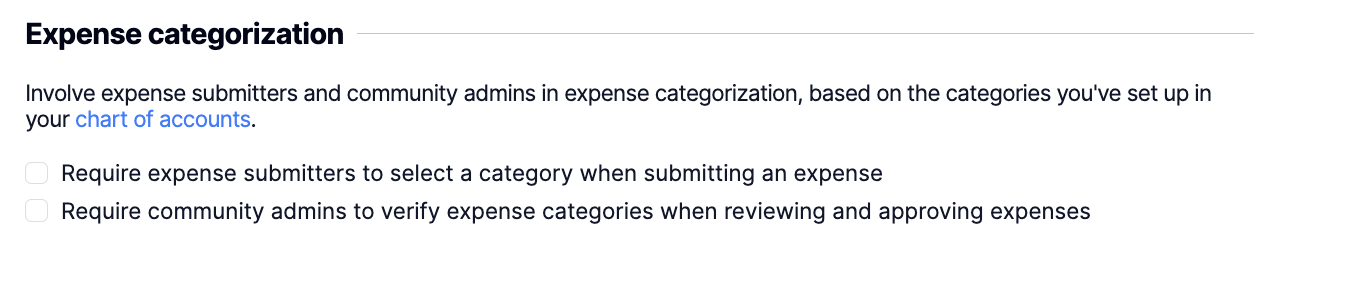 **Require community admins to verify expense categories when reviewing and approving expenses:**