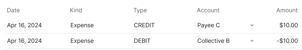 Or when an expense is paid from Community B to Payee C, two transactions are also created: