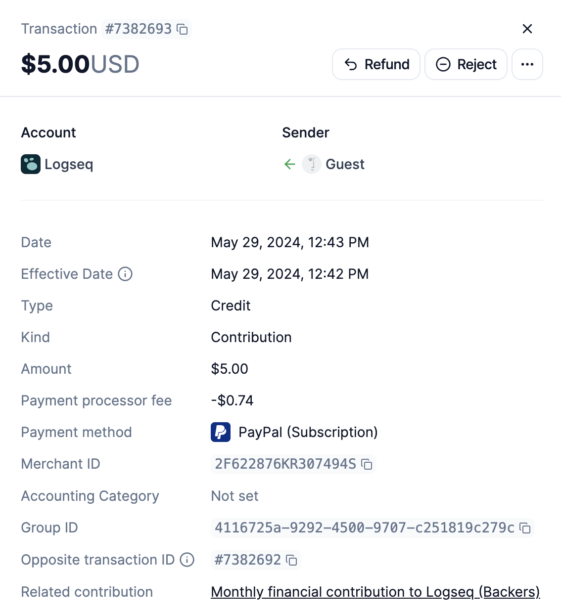 2. If you are a community administrator you will see all the transactions that are related to the community (all the added funds, contributions made to the community and expenses submitted to the community, payment processor and host fees).
