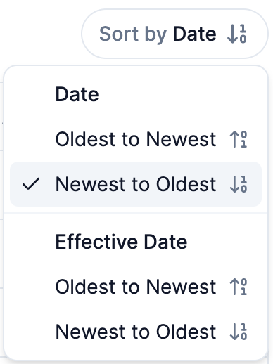 Sort the transactions either by Date (Oldest - Newset) or Effective Date (Oldest - Newest)