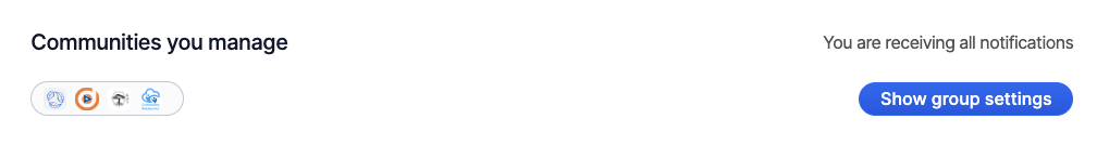 For the ***Communities*** and ***Organizations you manage*** groups, we display only a summary of your current settings and a button to open those group-specific settings: